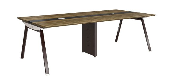Bàn họp C17 chân ống thép biên dạng mới, sử dụng gỗ phủ Laminate kết hợp melamine. Bàn có 2 nắp đi dây và chân hộp điện ở giữa