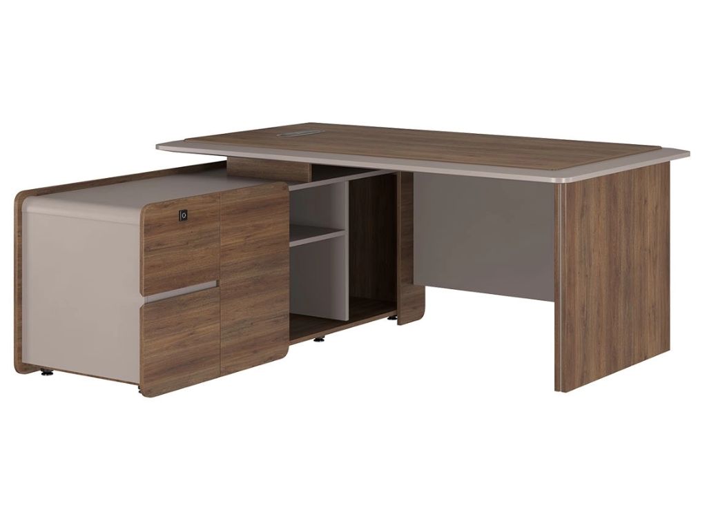 Bàn lãnh đạo LUXURY SUPREME S4 chất liệu gỗ sơn + melamine, tủ phụ bên trái, có khoang để CPU, ngăn kéo sử dụng khóa vân tay.