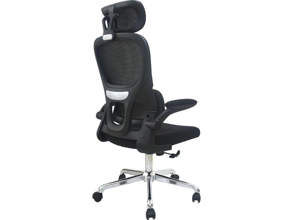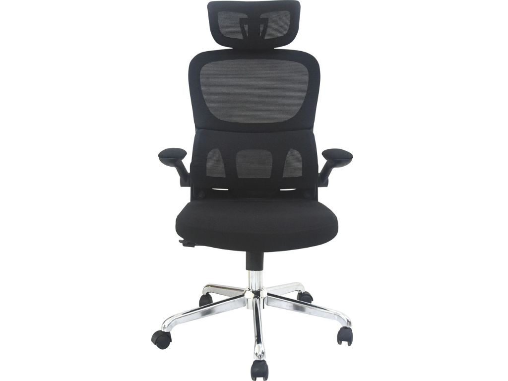Ghế lưới lãnh đạo cao cấp, đệm mút bọc vải, tựa nhựa bọc vải lưới, tay ghế bằng nhựa có thể gấp lên – xuống. Ghế có tựa đầu điều chỉnh cao thấp